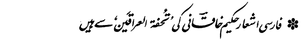Persain Couplets are from Hakim Khaqani's book 'Tuhfa tul Aaraqeen'